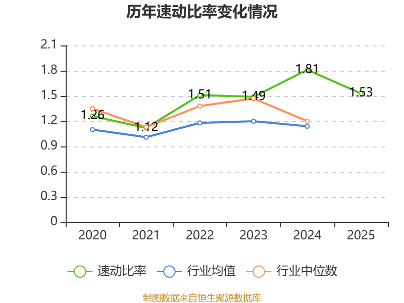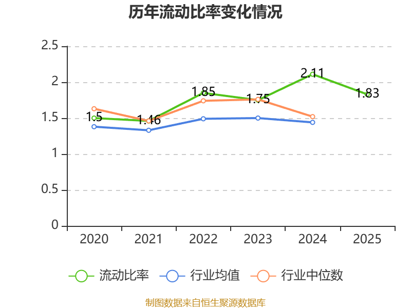 2025年,公司流动比率为1.83,速动比率为1.53。