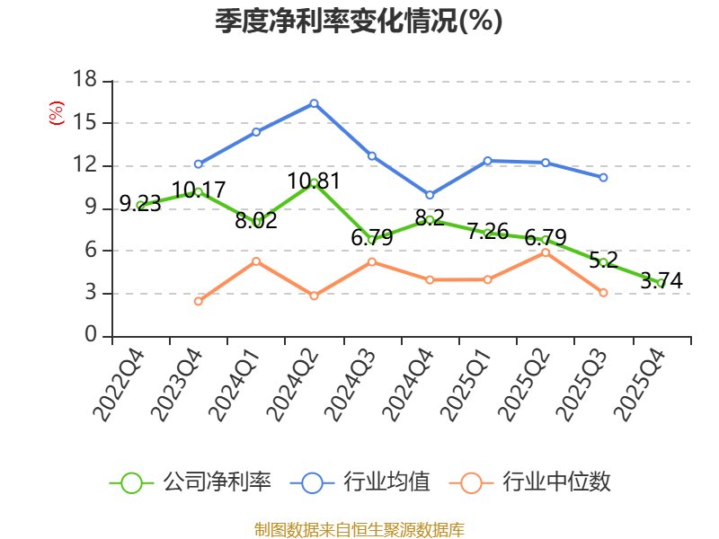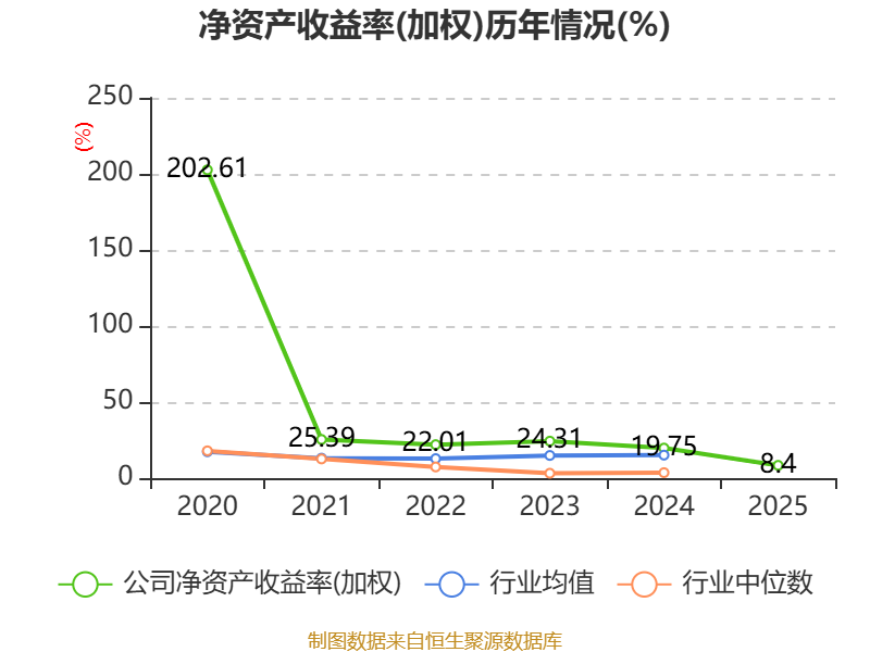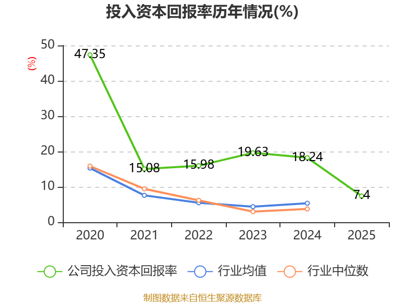 数据显示,2025年公司加权平均净资产收益率为8.4%,较上年同期下降11.35个百分点。公司2025年投入资本回报率为7.4%,较上年同期下降10.84个百分点。