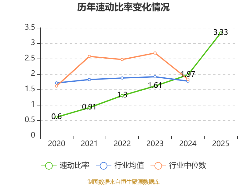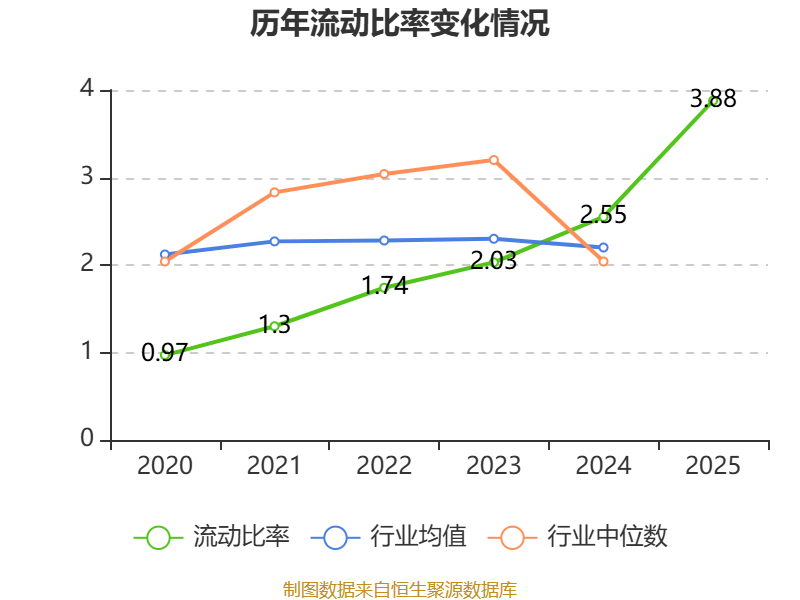 2025年,公司流动比率为3.88,速动比率为3.33。