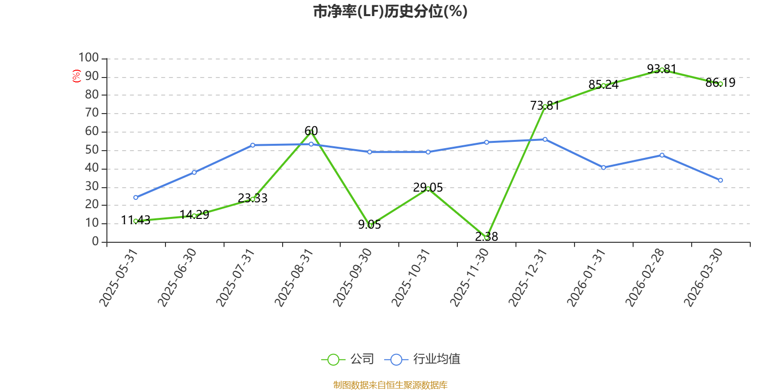 市盈率、市净率为负时,不显示当期分位数,会导致折线图中断。