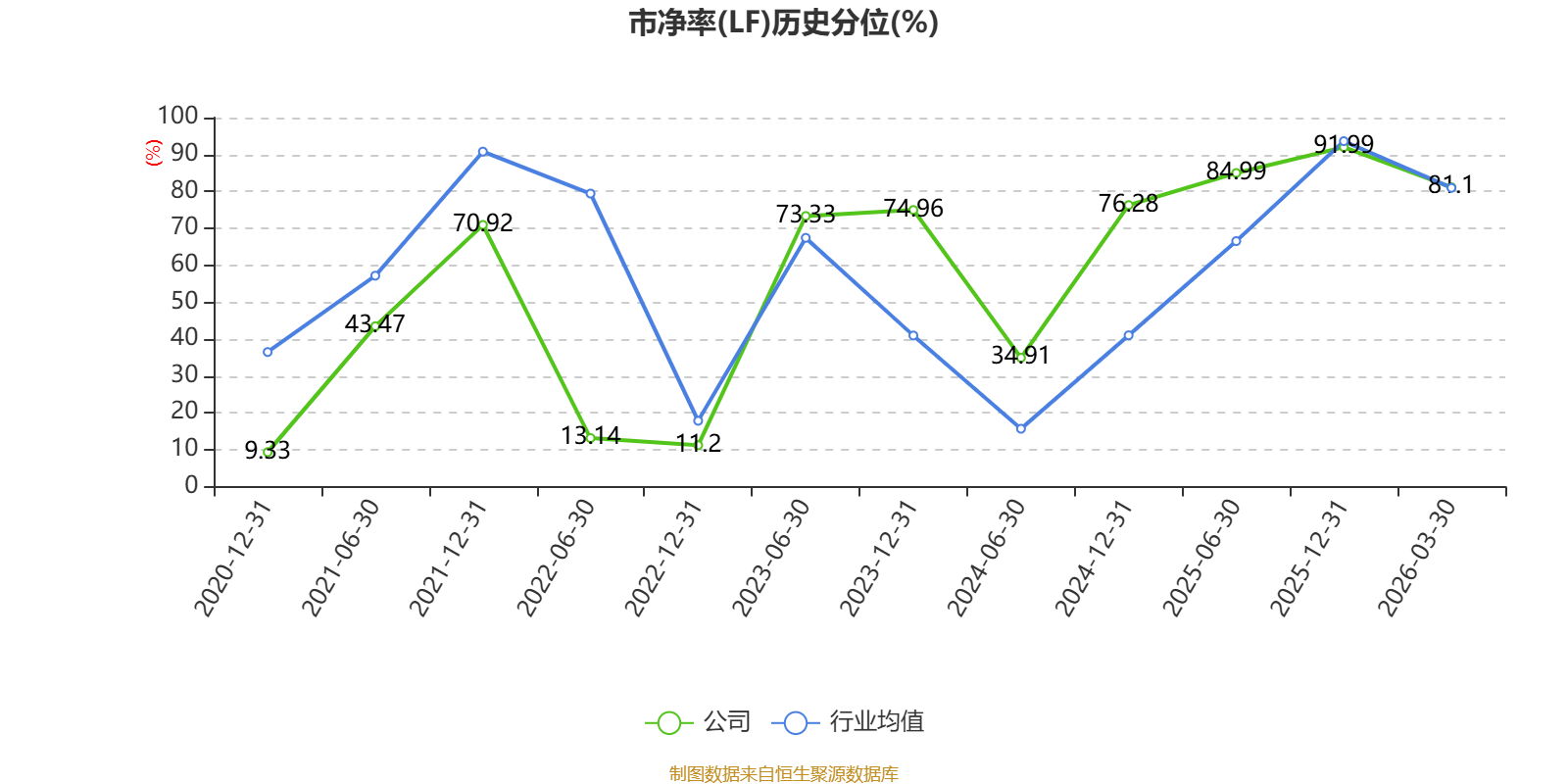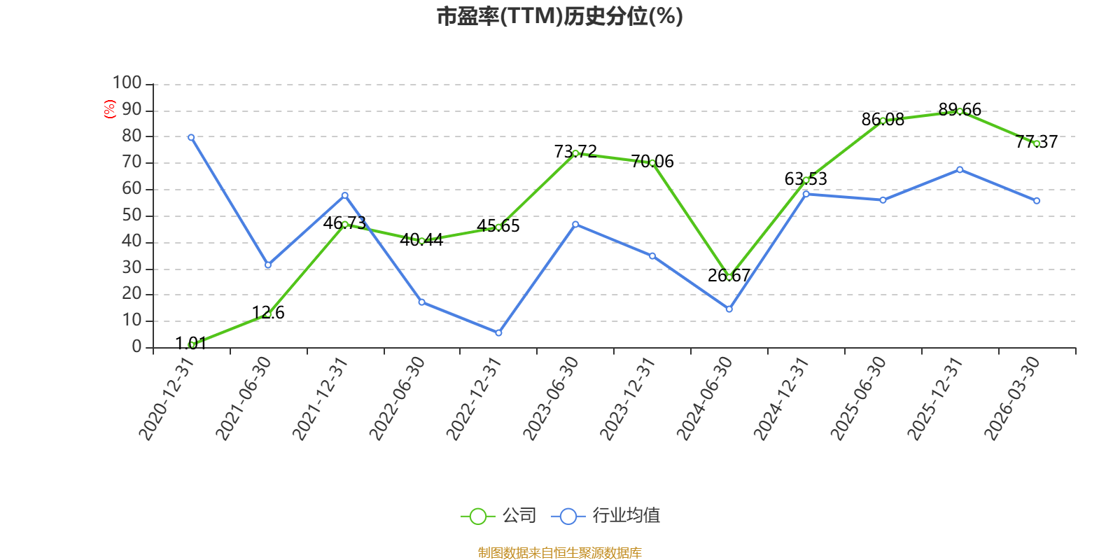 市盈率、市净率为负时,不显示当期分位数,会导致折线图中断。