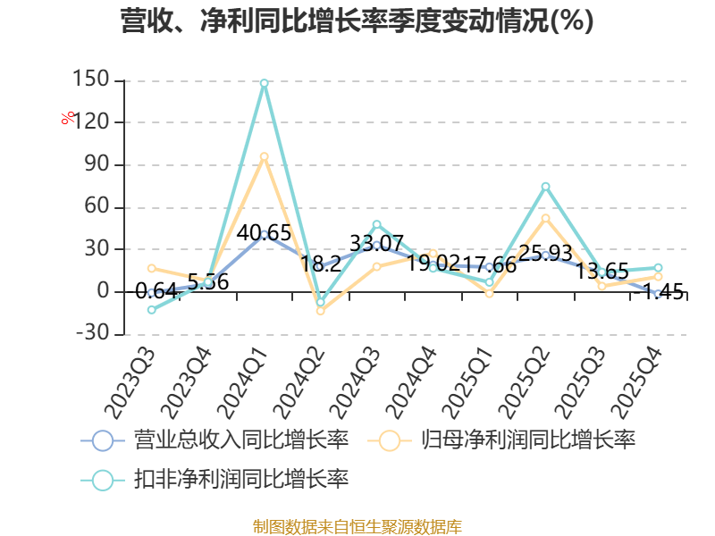 中证智能财讯兆威机电(003021)3月31日披露2025年年度报告。2025年,公司实现营业总收入17.16亿元,同比增长12.52%;归母净利润2.54亿元,同比增长12.97%;扣非净利润2.25亿元,同比增长22.60%;经营活动产生的现金流量净额为1.59亿元,同比增长28.89%;报告期内,兆威机电基本每股收益为1.06元,加权平均净资产收益率为7.66%。公司2025年度分配预案为:拟向全体股东每10股派现3.85元(含税)。