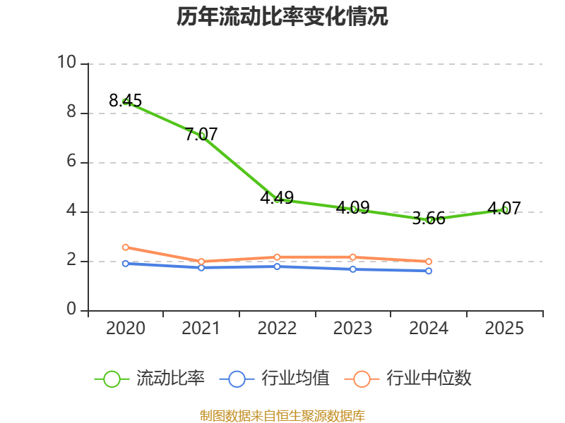 2025年,公司流动比率为4.07,速动比率为3.79。