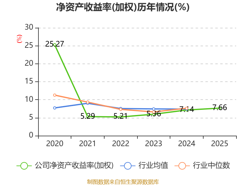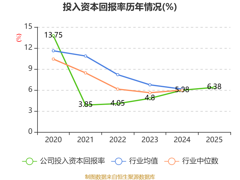 数据显示,2025年公司加权平均净资产收益率为7.66%,较上年同期上升0.52个百分点。公司2025年投入资本回报率为6.38%,较上年同期上升0.4个百分点。