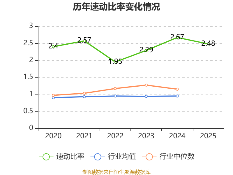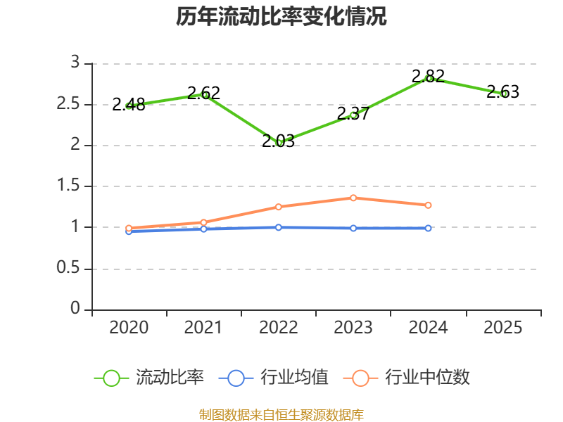2025年,公司流动比率为2.63,速动比率为2.48。