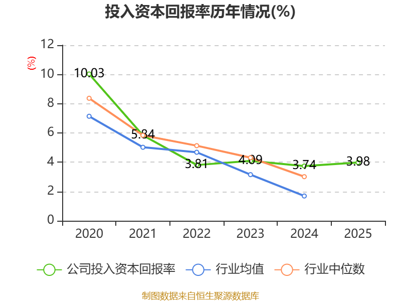 数据显示,2025年公司加权平均净资产收益率为4.29%,较上年同期上升0.29个百分点。公司2025年投入资本回报率为3.98%,较上年同期上升0.24个百分点。