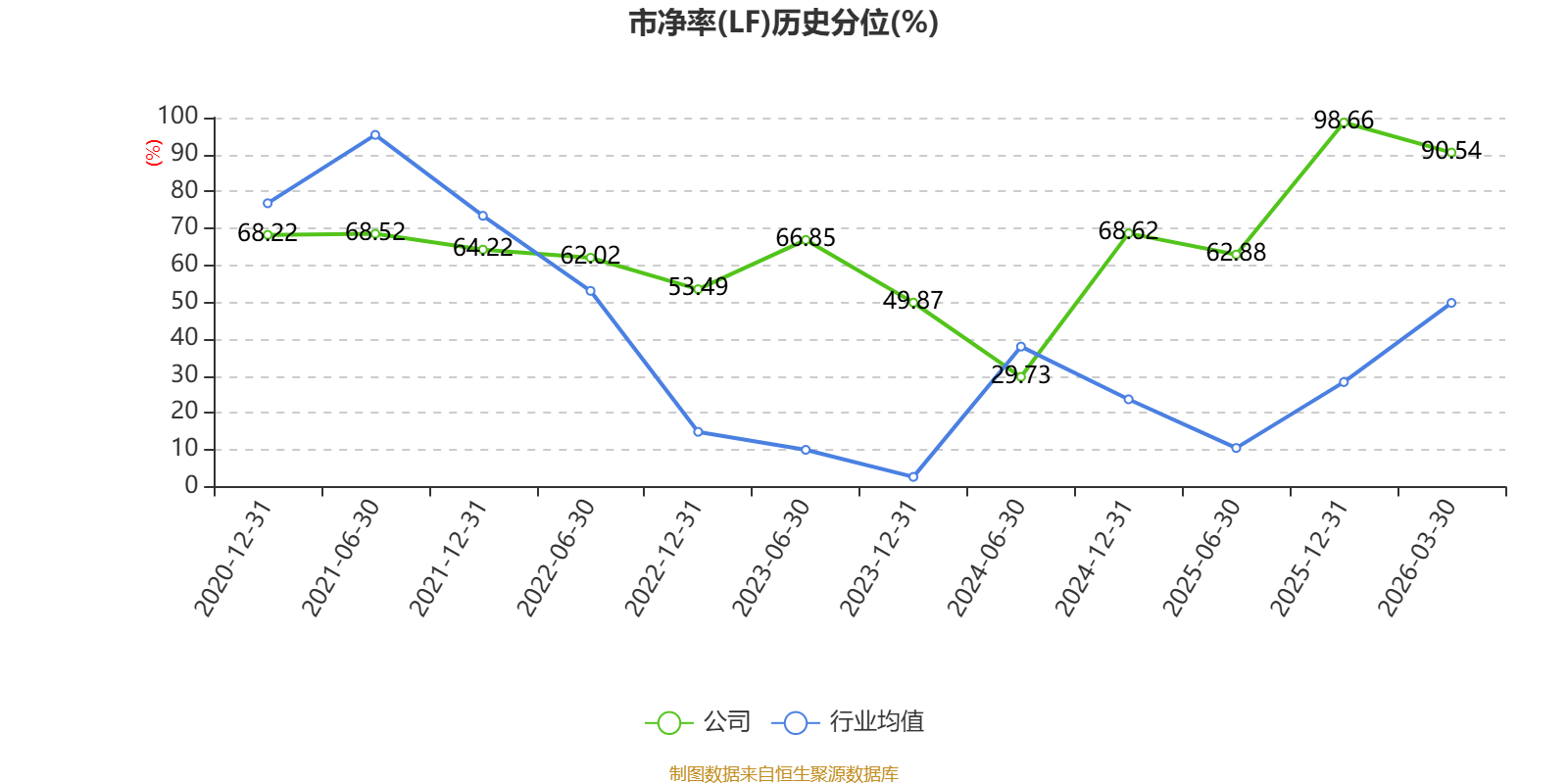 市盈率、市净率为负时,不显示当期分位数,会导致折线图中断。