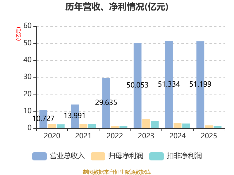 中证智能财讯海峡股份(002320)3月31日披露2025年年度报告。2025年,公司实现营业总收入51.2亿元,同比下降0.26%;归母净利润1.73亿元,同比下降44.13%;扣非净利润1.47亿元,同比下降48.04%;经营活动产生的现金流量净额为15.21亿元,同比下降9.14%;报告期内,海峡股份基本每股收益为0.0775元,加权平均净资产收益率为3.34%。公司2025年度分配预案为:拟向全体股东每10股派现0.4元(含税)。