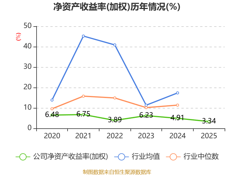 数据显示,2025年公司加权平均净资产收益率为3.34%,较上年同期下降1.57个百分点。公司2025年投入资本回报率为10.59%,较上年同期下降4.44个百分点。