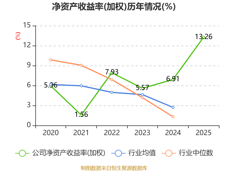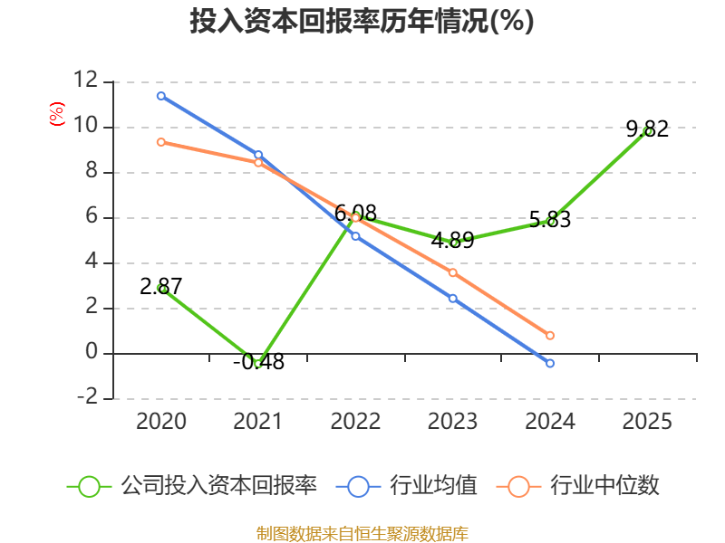 数据显示,2025年公司加权平均净资产收益率为13.26%,较上年同期上升6.35个百分点。公司2025年投入资本回报率为9.82%,较上年同期上升3.99个百分点。