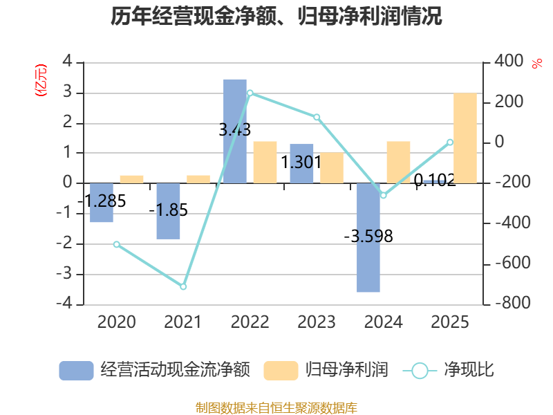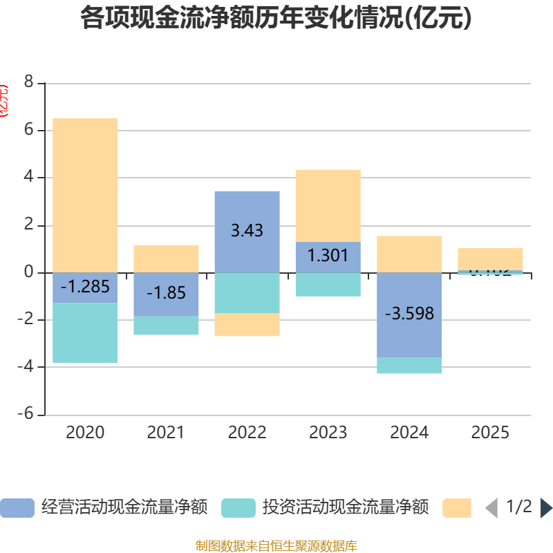 截至2025年,公司经营活动现金流净额为1023.42万元,同比增加3.7亿元;筹资活动现金流净额9294.4万元,同比减少6121.64万元;投资活动现金流净额-960.04万元,上年同期为-6595.65万元。