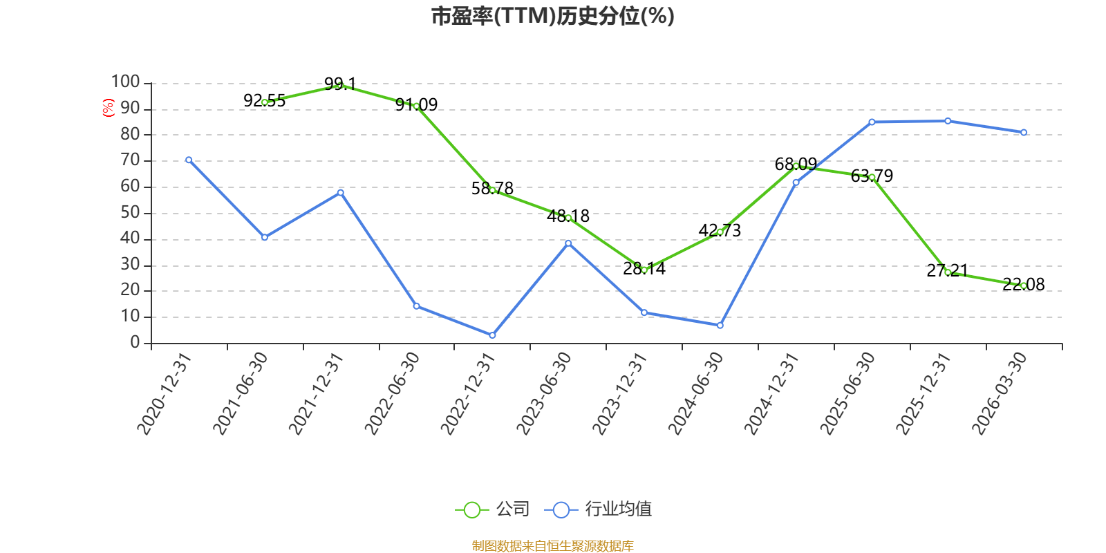 市盈率、市净率为负时,不显示当期分位数,会导致折线图中断。