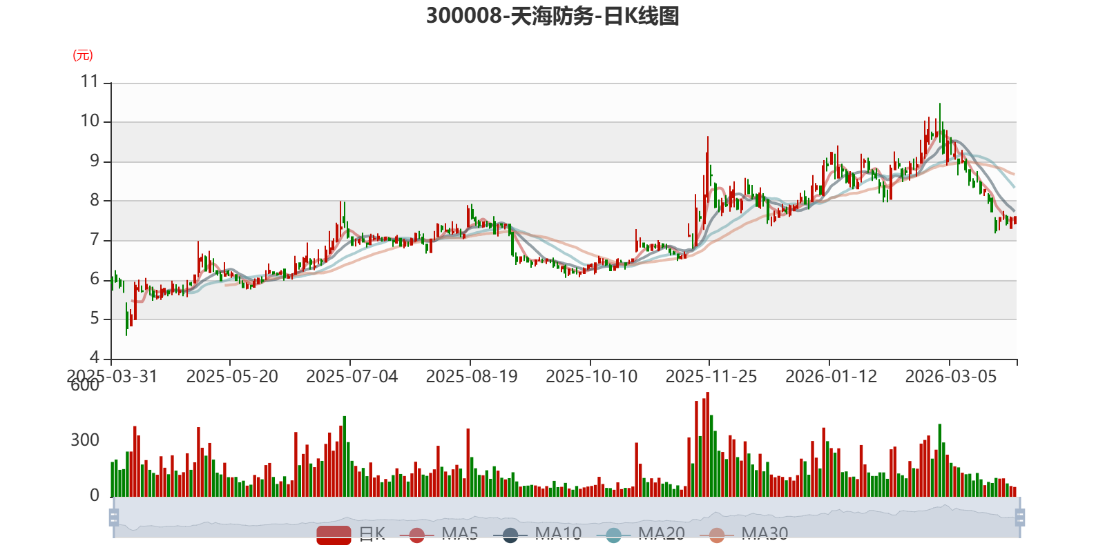 以3月30日收盘价计算,天海防务目前市盈率(TTM)约为44.01倍,市净率(LF)约5.44倍,市销率(TTM)约2.91倍。