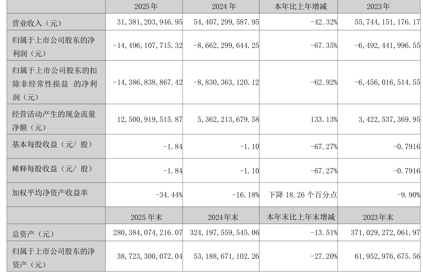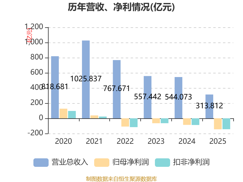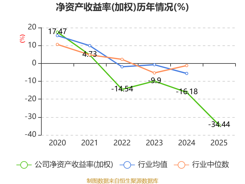 数据显示,2025年公司加权平均净资产收益率为-34.44%,较上年同期下降18.26个百分点。公司2025年投入资本回报率为-6.98%,较上年同期下降5.34个百分点。