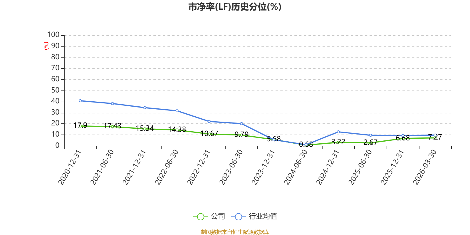 市盈率、市净率为负时,不显示当期分位数,会导致折线图中断。