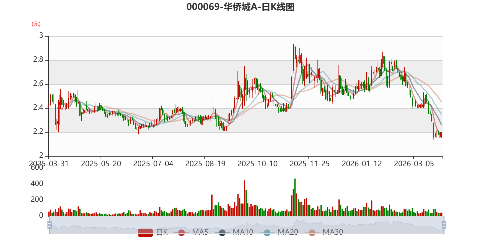 以3月30日收盘价计算,华侨城A目前市盈率(TTM)约为-1.2倍,市净率(LF)约0.45倍,市销率(TTM)约0.56倍。