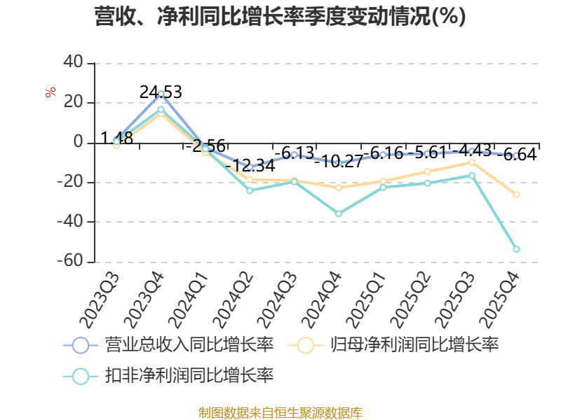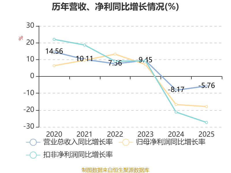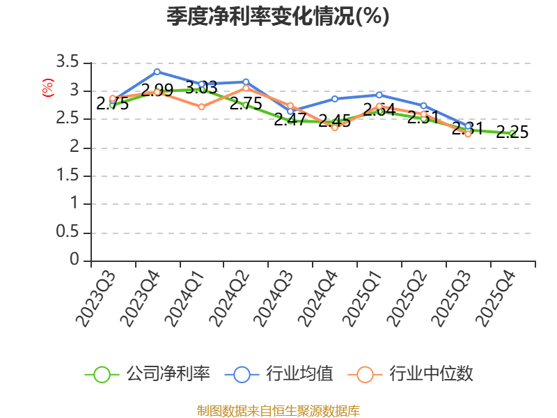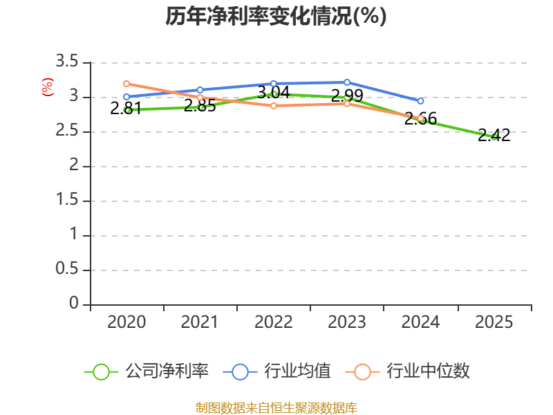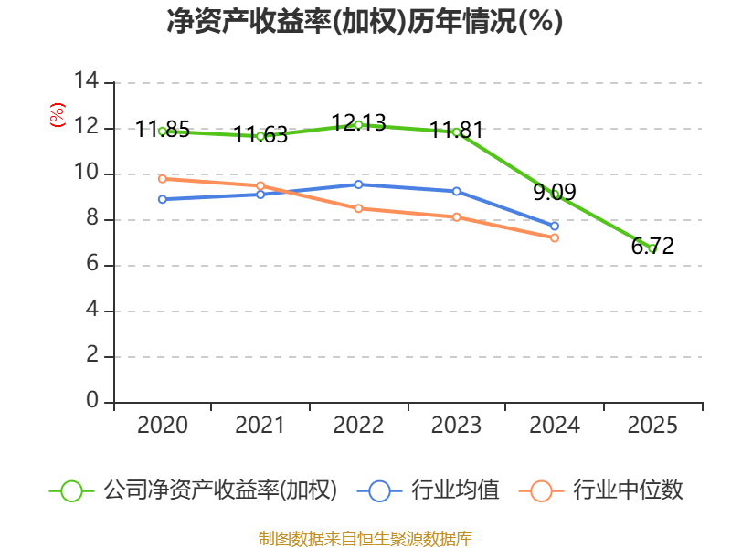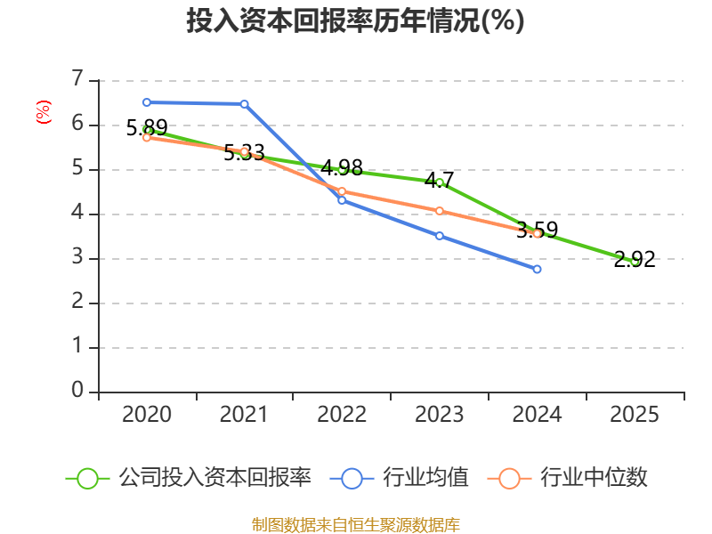 数据显示,2025年公司加权平均净资产收益率为6.72%,较上年同期下降2.37个百分点。公司2025年投入资本回报率为2.92%,较上年同期下降0.67个百分点。