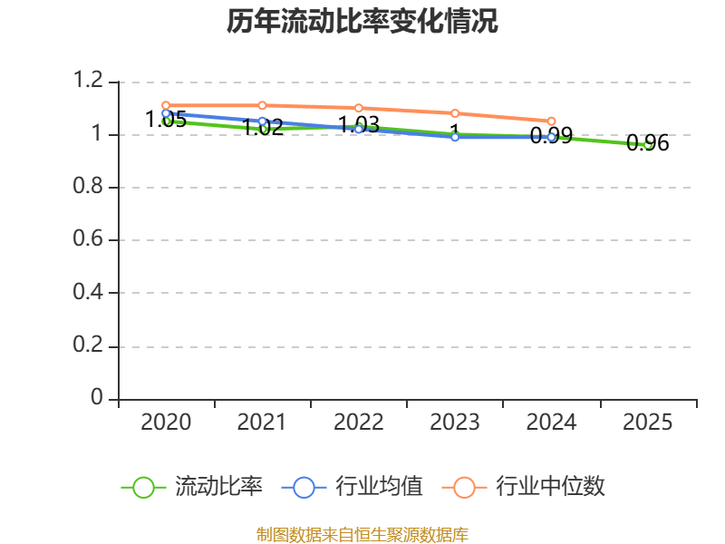 2025年,公司流动比率为0.96,速动比率为0.79。