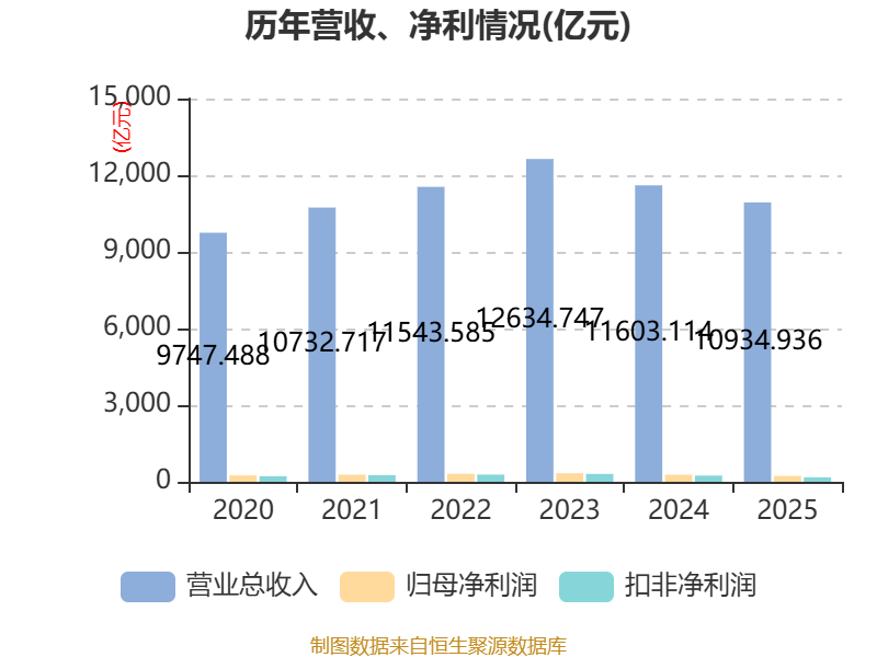 中证智能财讯中国中铁(601390)3月31日披露2025年年度报告。2025年,公司实现营业总收入10934.94亿元,同比下降5.76%;归母净利润228.92亿元,同比下降17.91%;扣非净利润176.64亿元,同比下降27.38%;经营活动产生的现金流量净额为287.72亿元,同比增长2.57%;报告期内,中国中铁基本每股收益为0.848元,加权平均净资产收益率为6.72%。公司2025年度分配预案为:拟向全体股东每10股派现0.86元(含税)。