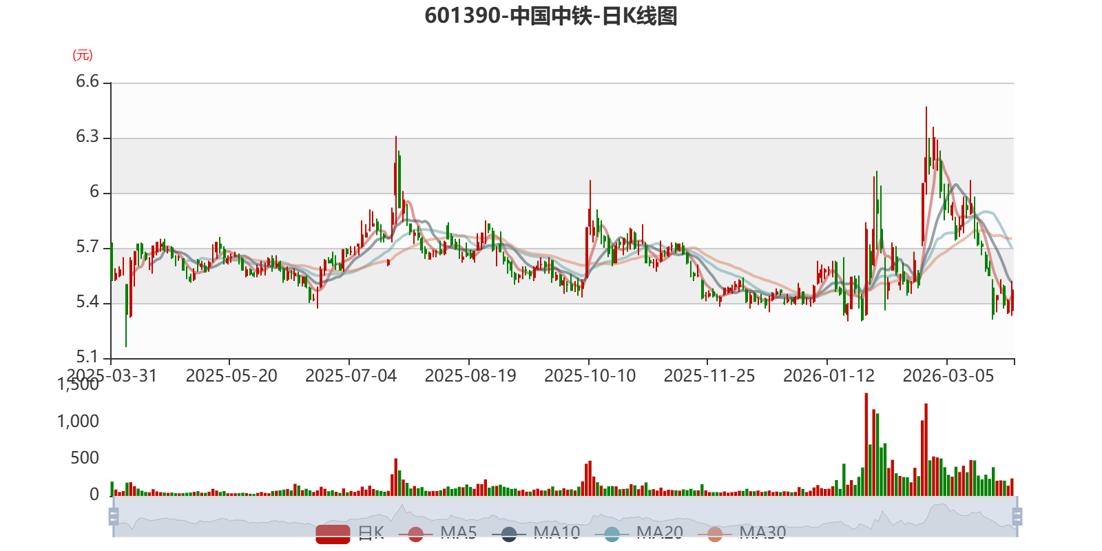 以3月30日收盘价计算,中国中铁目前市盈率(TTM)约为5.9倍,市净率(LF)约0.36倍,市销率(TTM)约0.12倍。