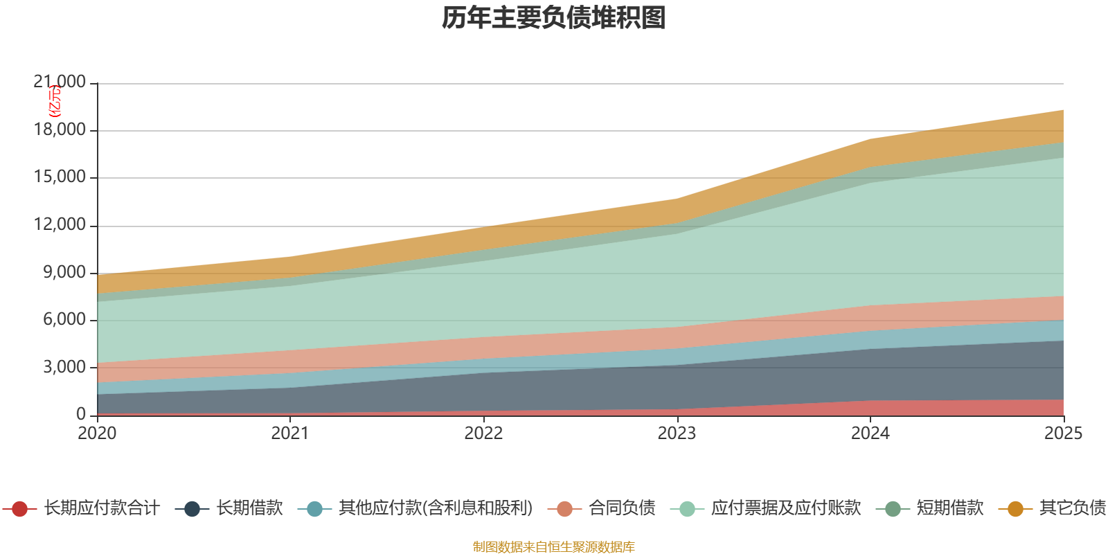 负债重大变化方面,截至2025年末,公司应付票据及应付账款较上年末增加12.94%,占公司总资产比重上升1.08个百分点;合同负债较上年末减少6.37%,占公司总资产比重下降1.03个百分点;长期借款较上年末增加14.58%,占公司总资产比重上升0.67个百分点;短期借款较上年末减少2.58%,占公司总资产比重下降0.49个百分点。
