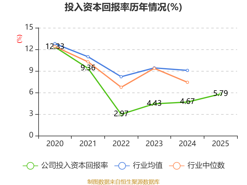 数据显示,2025年公司加权平均净资产收益率为8.34%,较上年同期上升2.1个百分点。公司2025年投入资本回报率为5.79%,较上年同期上升1.12个百分点。