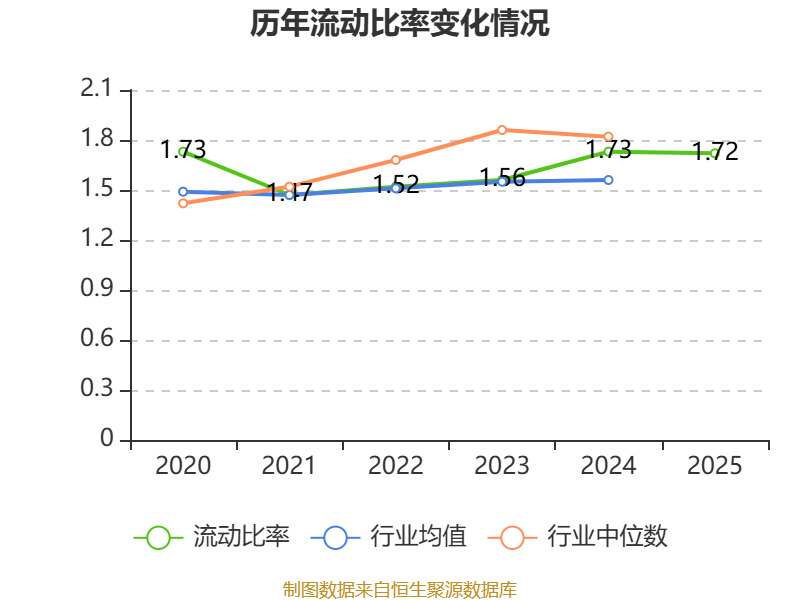 2025年,公司流动比率为1.72,速动比率为1.3。