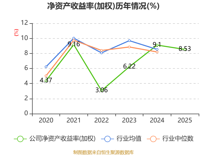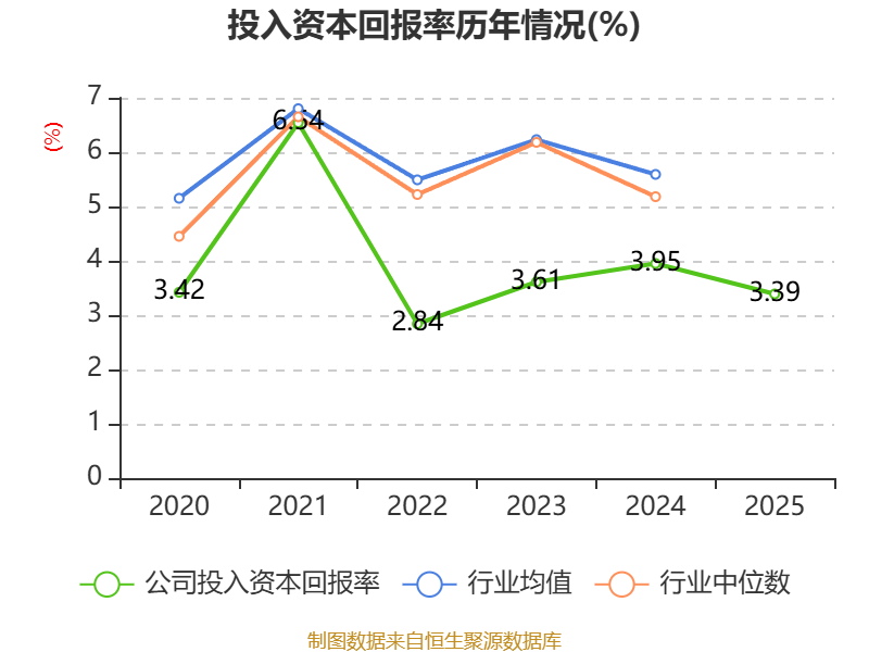 数据显示,2025年公司加权平均净资产收益率为8.53%,较上年同期下降0.57个百分点。公司2025年投入资本回报率为3.39%,较上年同期下降0.56个百分点。