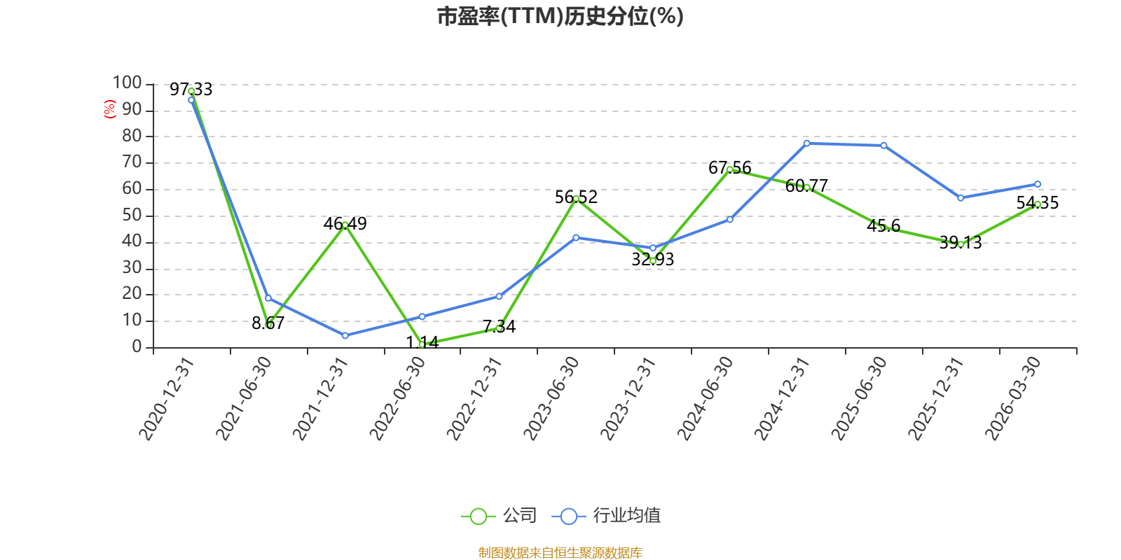 市盈率、市净率为负时,不显示当期分位数,会导致折线图中断。
