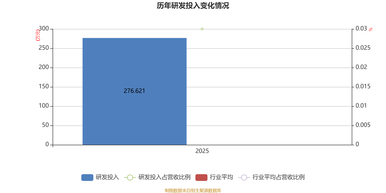 2025年全年,公司研发投入金额为276.62万元;研发投入占营业收入比例为0.03%。此外,公司全年研发投入资本化率为0%。