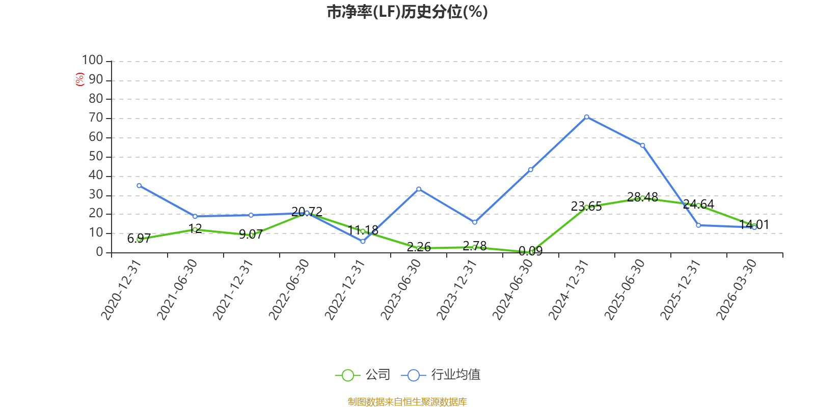 市盈率、市净率为负时,不显示当期分位数,会导致折线图中断。