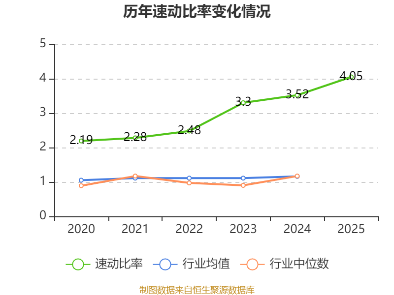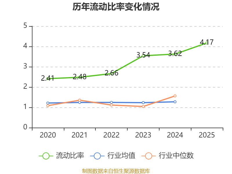 2025年,公司流动比率为4.17,速动比率为4.05。