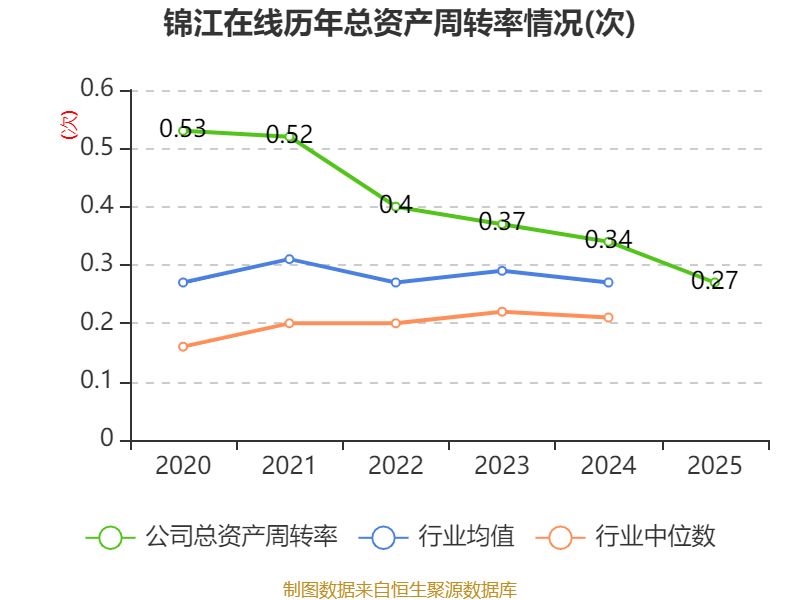 中证智能财讯锦江在线(600650)3月31日披露2025年年度报告。2025年,公司实现营业总收入15.05亿元,同比下降17.69%;归母净利润1.42亿元,同比下降27.81%;扣非净利润1.32亿元,同比下降6.30%;经营活动产生的现金流量净额为1.84亿元,同比下降35.65%;报告期内,锦江在线基本每股收益为0.257元,加权平均净资产收益率为3.28%。公司2025年度分配预案为:拟向全体股东每10股派现1.1元(含税)。