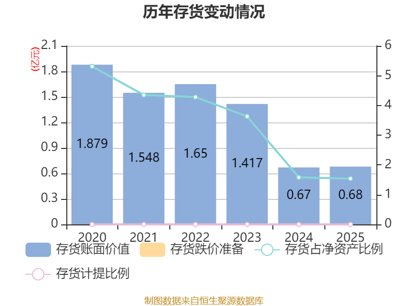 从存货变动来看,截至2025年末,公司存货账面价值为6797.25万元,占净资产的1.54%,较上年末增加101.73万元。公司本期没有计提存货跌价准备。