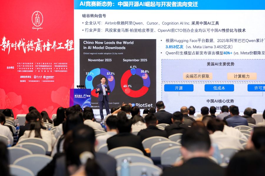 熊辉教授现场作专题授课,这位国际人工智能顶尖学者带来了对全球AI竞争格局的冷静洞察,深刻剖析了人工智能如何驱动制造业与服务业深度融合,为企业拥抱AI、把握发展新机遇提供了宝贵思路和方法。