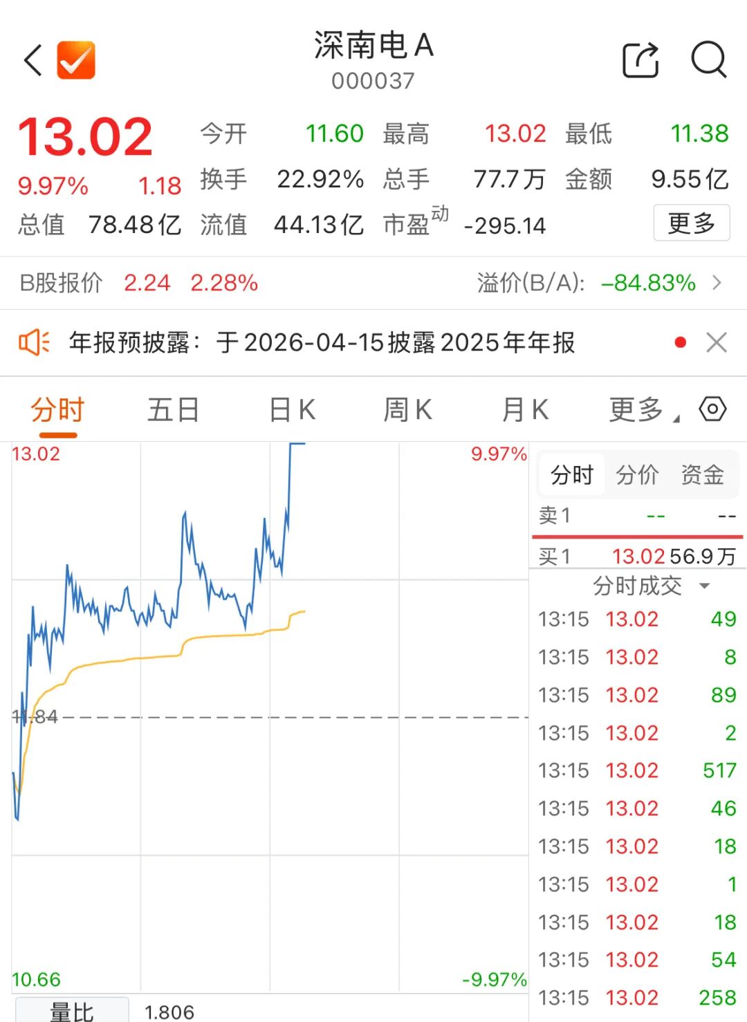 午后,绿电概念局部回暖。深南电A(000037)涨停,此前闽东电力、新中港涨停,华电辽能、华电能源等冲高。消息面上,华泰证券指出,霍尔木兹海峡封锁强化化石能源价格易涨难跌预期,水、核、风、光、生物质等绿电板块有望充分受益。
