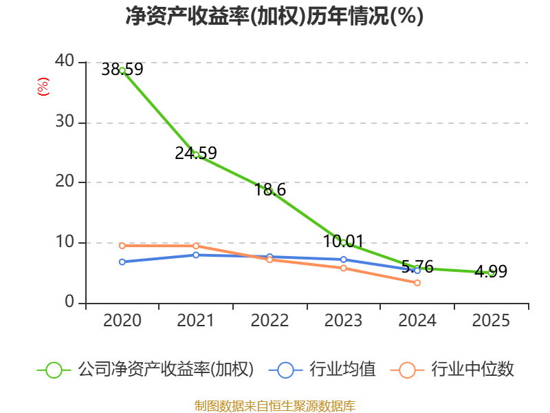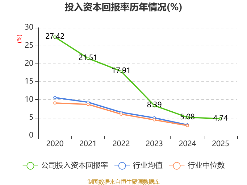 数据显示,2025年公司加权平均净资产收益率为4.99%,较上年同期下降0.77个百分点。公司2025年投入资本回报率为4.74%,较上年同期下降0.34个百分点。