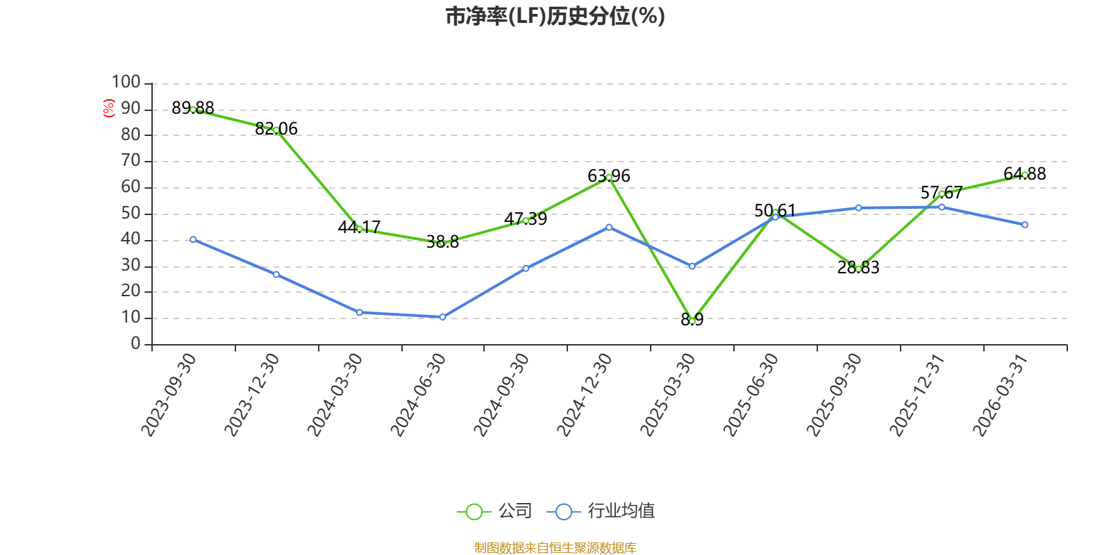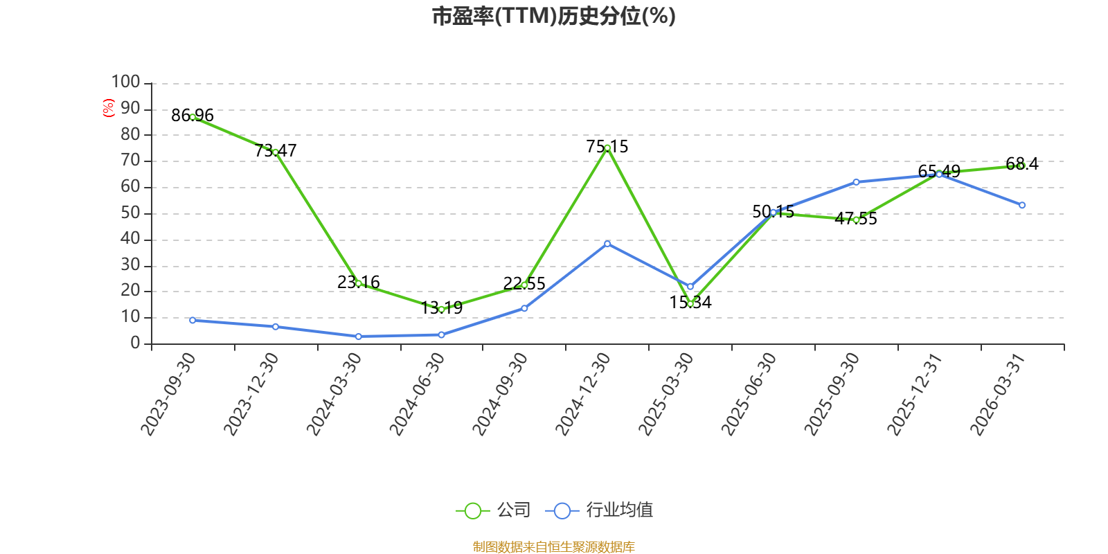 市盈率、市净率为负时,不显示当期分位数,会导致折线图中断。