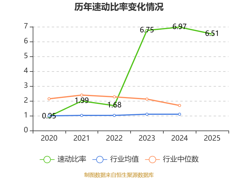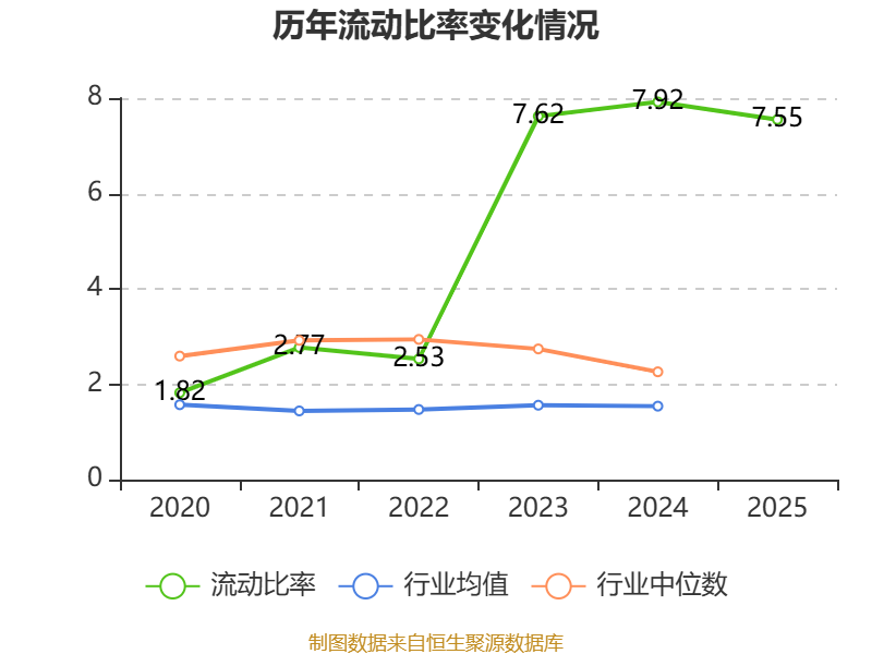 2025年,公司流动比率为7.55,速动比率为6.51。