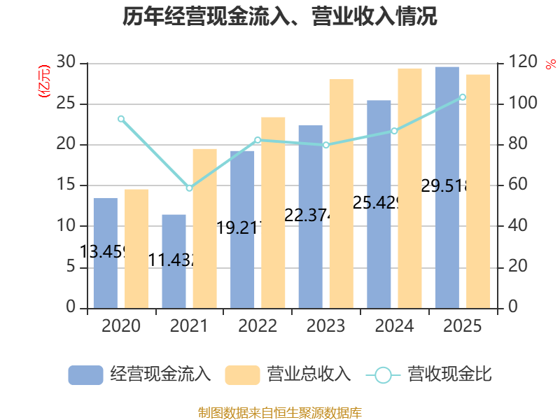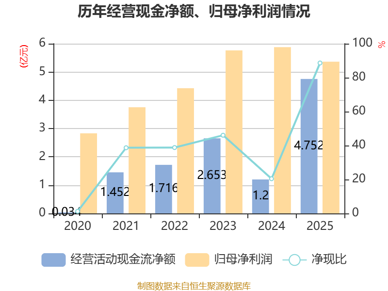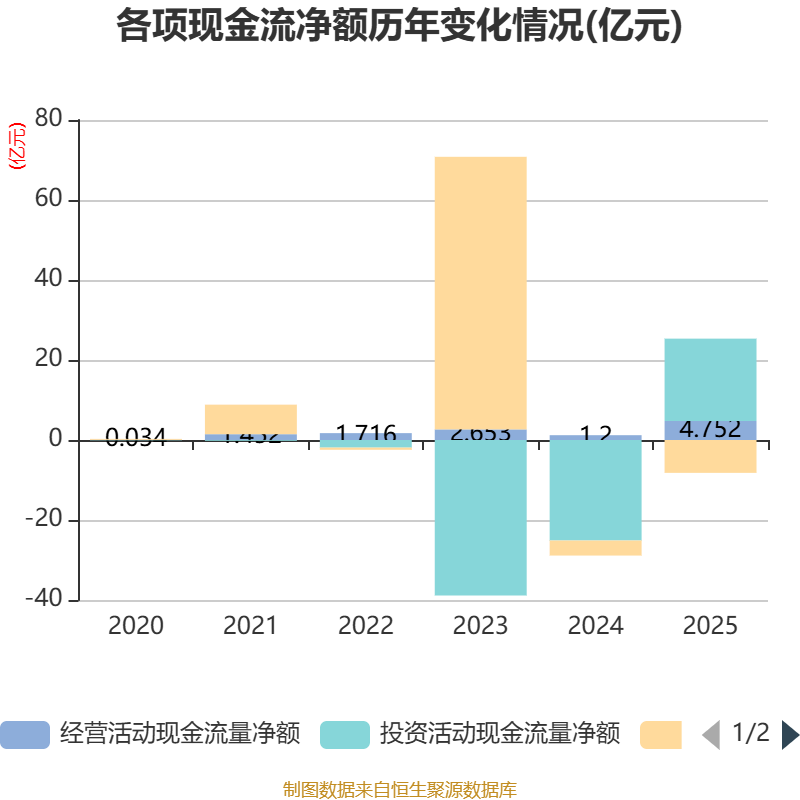 截至2025年,公司经营活动现金流净额为4.75亿元,同比增长295.81%;筹资活动现金流净额-8.22亿元,同比减少4.45亿元;投资活动现金流净额20.59亿元,上年同期为-25.12亿元。