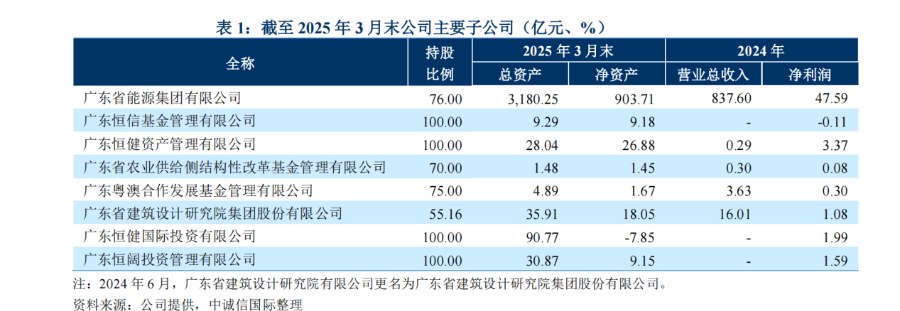 从恒健控股控股的主要子公司来看,主要是广东能源集团、广东省建筑设计研究院集团(简称“广东建科”)、广东恒健资产管理、广东恒健国投等,其中广东能源集团2024年贡献的净利润占比超过90%。