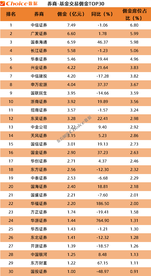 2025年公募基金共向券商支付交易佣金110.14亿元,同比略有增加。其中,中信证券、广发证券、国泰海通佣金收入排名前三。