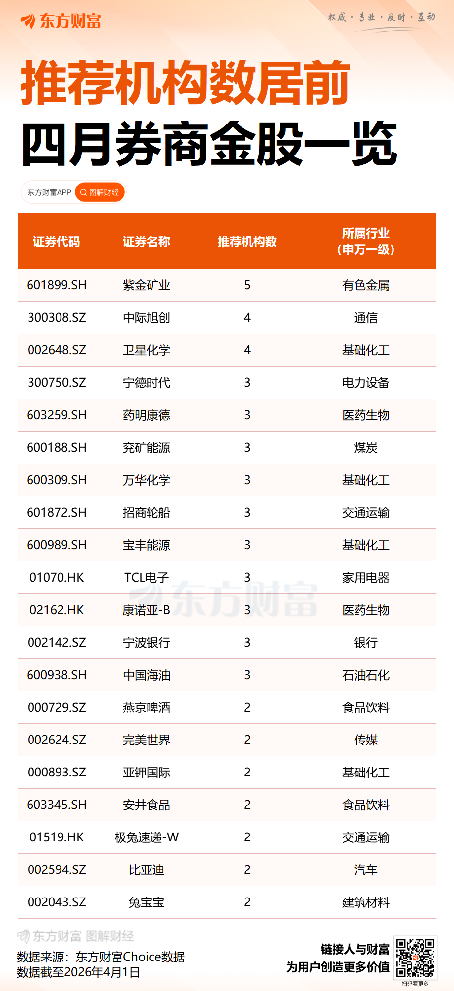 券商4月推荐98只金股