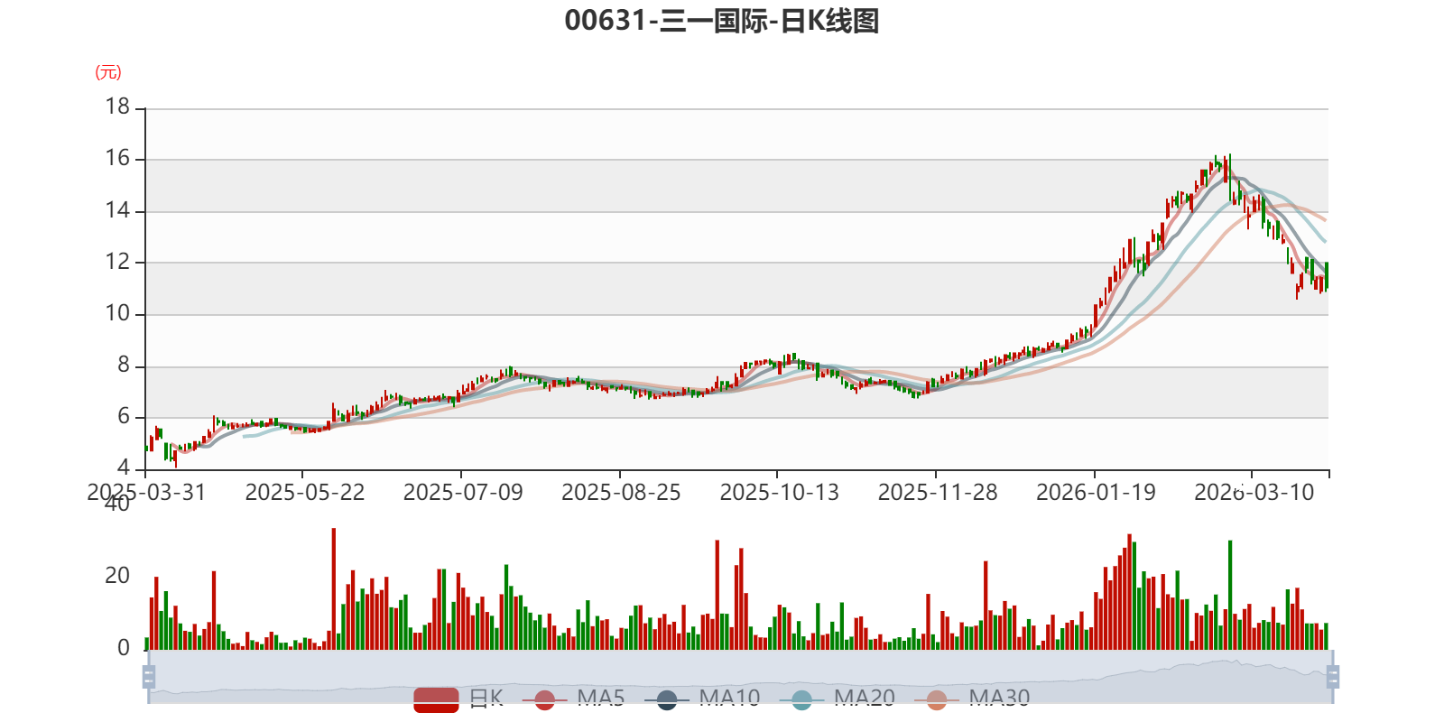 以3月31日收盘价计算,三一国际目前市盈率(TTM)约18.46倍,市净率(TTM)约2.49倍,市销率(TTM)约1.35倍。
