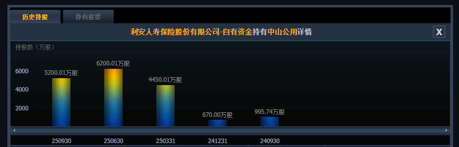 查阅资料显示,利安人寿于2024年三季度首次持仓中山公用,截至当年三季度末,持股数达995.74万股;2025年,利安人寿大幅加仓,在当年二季度持有6200万股,后在三季度时减持了1000万股。