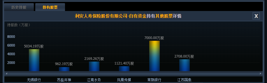 除持股中山公用外,利安人寿还利用自有资金持有其他多家A股上市公司的股份,包括无锡银行、苏盐井神、江南水务、凤凰传媒、常熟银行、江苏国泰。