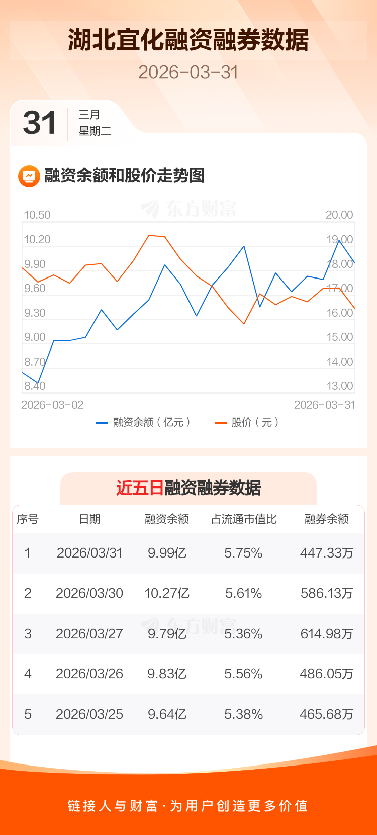 交易所最新数据显示,湖北宜化于2026年3月31日获融资买入9197.25万元,融资偿还1.19亿元,当日融资净偿还2730.77万元。目前,该股融资余额9.99亿,占流通市值比例为5.75%。