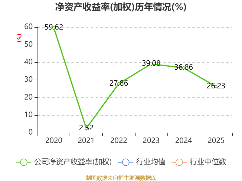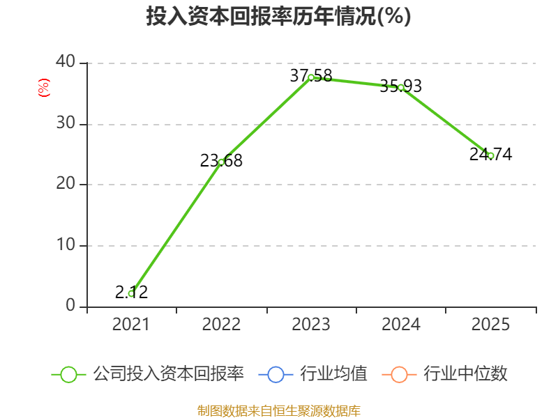 数据显示,2025年公司加权平均净资产收益率为26.23%,较上年同期下降10.63个百分点。公司2025年投入资本回报率为24.74%,较上年同期下降11.19个百分点。