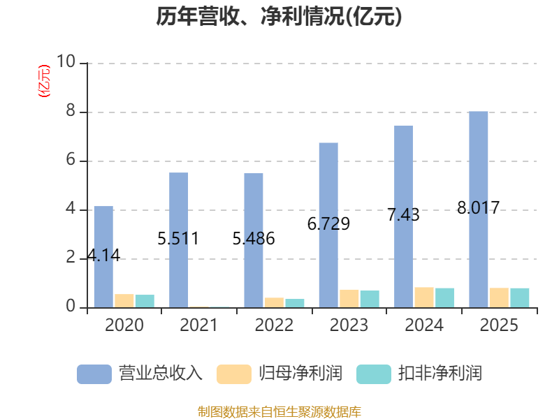 中证智能财讯觅睿科技(920036)3月31日披露2025年年度报告。2025年,公司实现营业总收入8.02亿元,同比增长7.90%;归母净利润7914.34万元,同比下降3.08%;扣非净利润7781.01万元,同比下降0.40%;经营活动产生的现金流量净额为7428.71万元,同比下降0.77%;报告期内,觅睿科技基本每股收益为1.94元,加权平均净资产收益率为26.23%。公司2025年度分配预案为:拟向全体股东每10股派现2元(含税)。