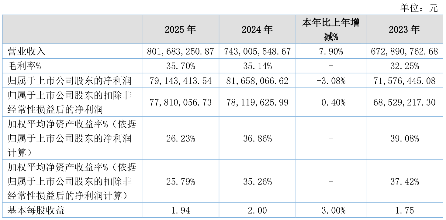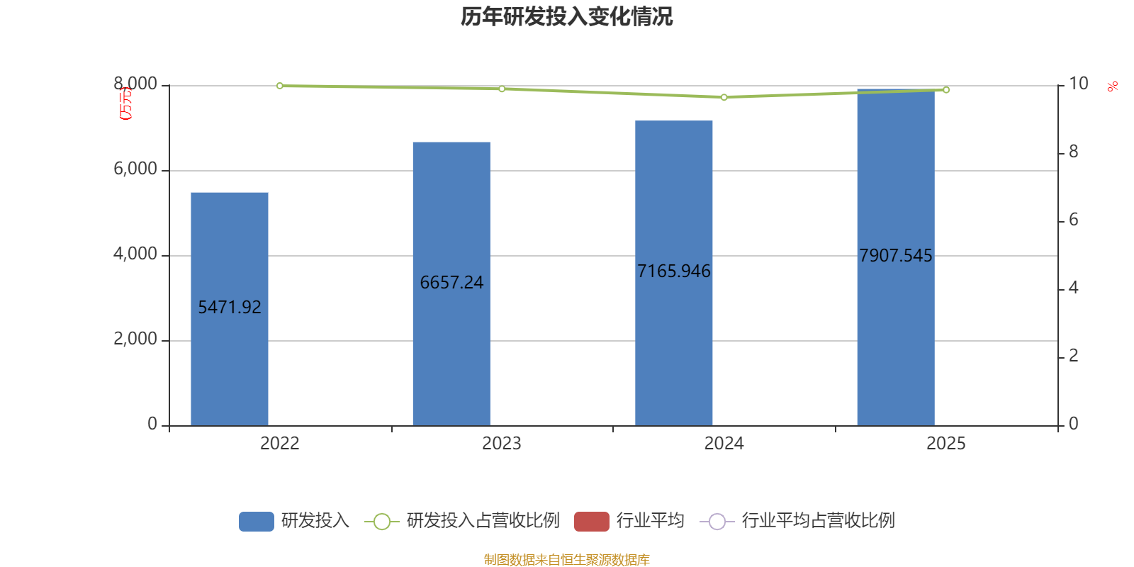 2025年全年,公司研发投入金额为7907.55万元,同比增长10.35%;研发投入占营业收入比例为9.86%,相比上年同期上升0.22个百分点。此外,公司全年研发投入资本化率为0%。
